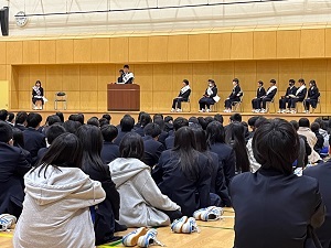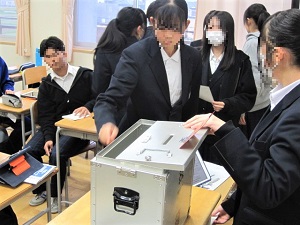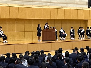 ■「生徒の意見を代表していきたい」、「生徒会の活動を盛り上げていきたい」など、3名はそれぞれ抱負を語ってくれましたが、まずはこれから選出される執行部のみんなと同じ方向を向いて活動ができるよう、リーダーシップを発揮してくれることを期待します。