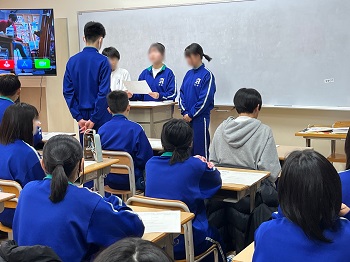 ■始業式、その前日(1月6日)に行われた新生徒会役員によるリーダー研修会の様子を紹介します。