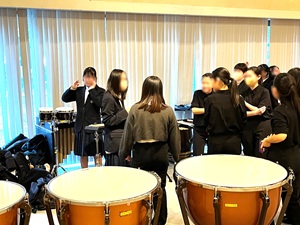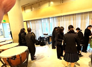 ■1月17日(土)、守山市民ホールにおいて「第54回滋賀県アンサンブルコンテスト(中学生の部)」が開催され、12月に行われた予選で好成績を収めた本校の吹奏楽部が参加をしました。(会場内では撮影ができないため、控室で準備をしている様子を紹介します。)