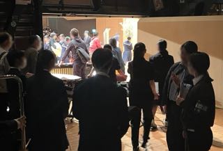 ■今回も、会場からの撮影はできませんので、文字通りの『舞台裏』で出番を待つ生徒と出場する生徒たちを、楽器の運搬などで支える生徒たちの様子を紹介します。